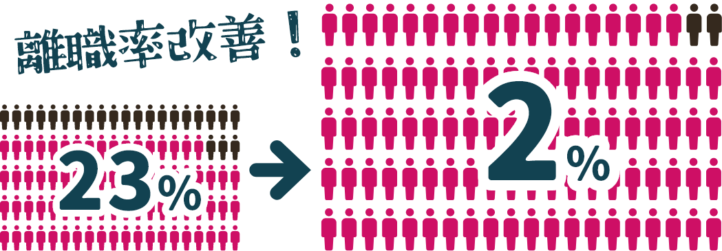 従業員の満足度を把握し、問題点を改善することで離職率の大幅低減が期待できます。